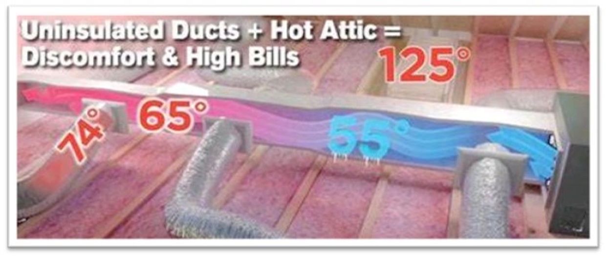 Air distribution ducts located in unconditioned spaces like attics, crawlspaces, garages, or unfinished basements are often made of thin materials that rapidly conduct heat or cold. As a result, up to 30% of the energy used to heat and cool your home is lost through these ducts, forcing HVAC systems to work harder to maintain comfortable indoor temperatures.